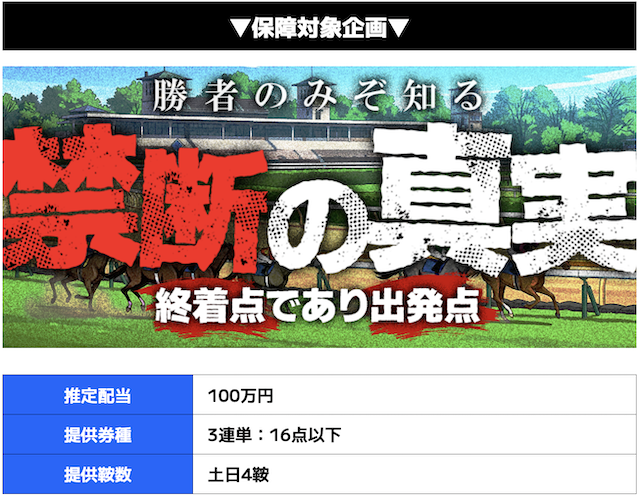 裏モノ競馬では、現在有料予想に対して新規限定2つの特典が用意されています。