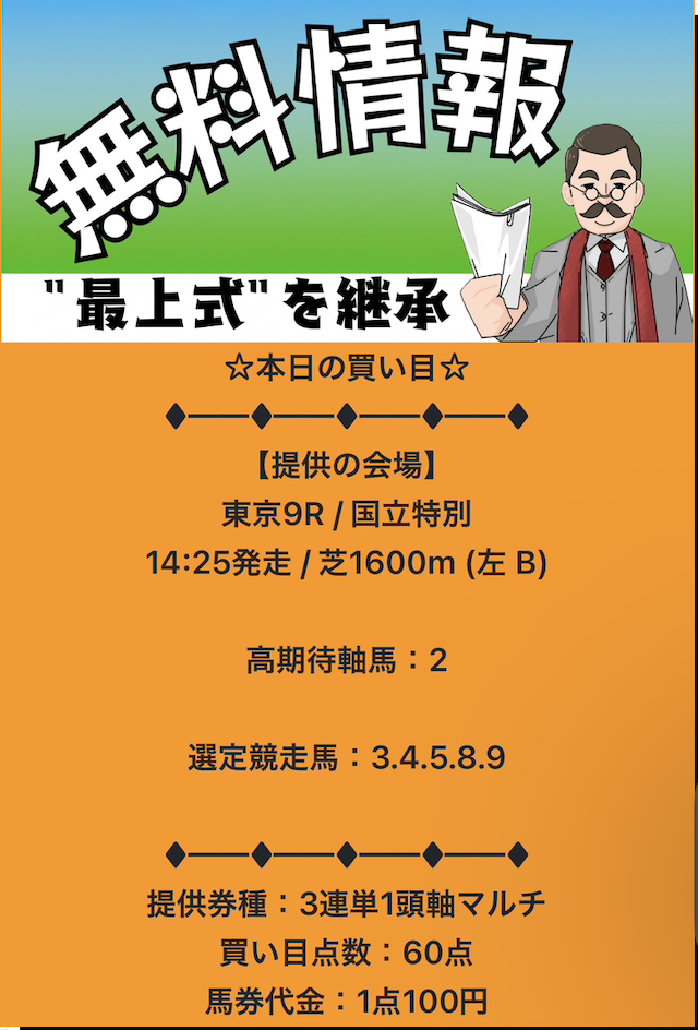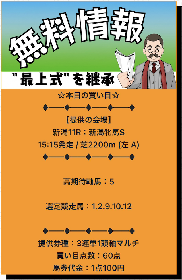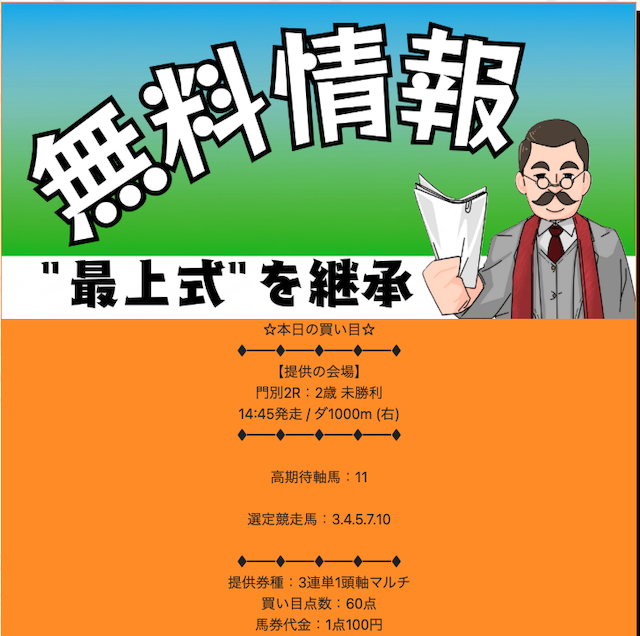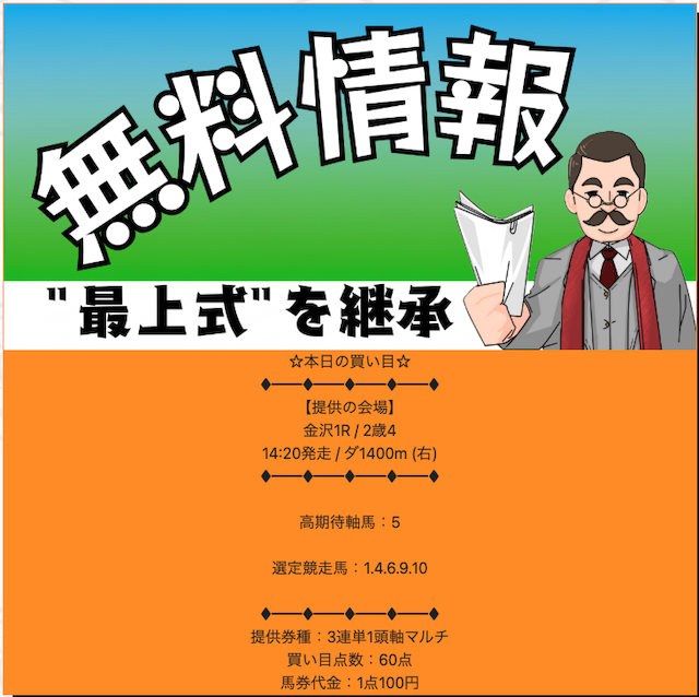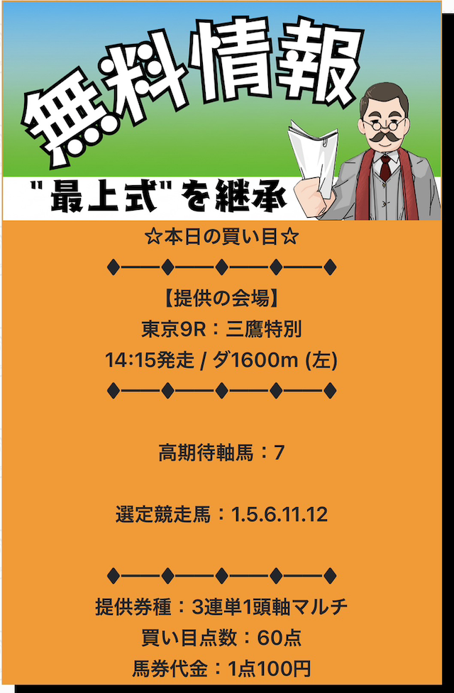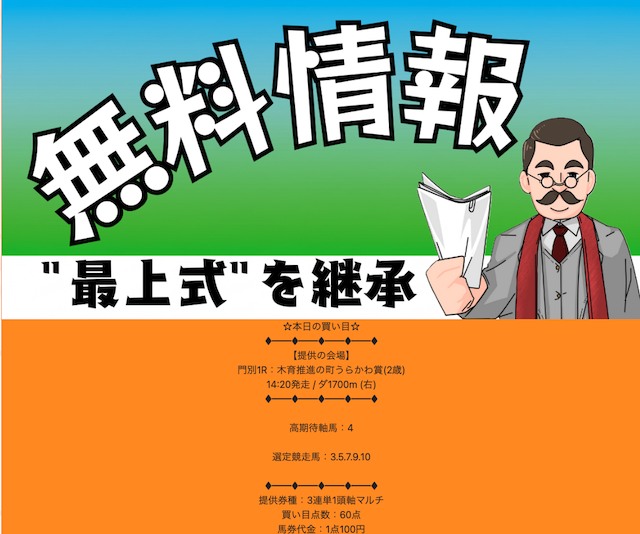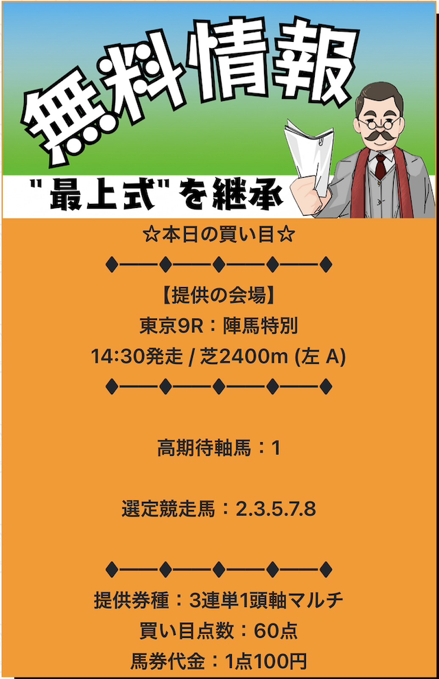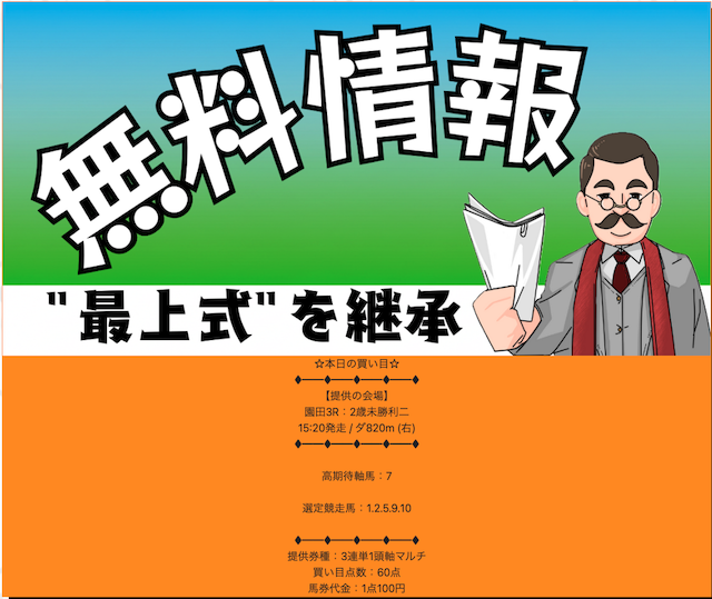最上式勝馬投票券は創設者である最上幸造が作った最上式という独自の指数を使ってコスパが良い予想を公開しているそうです。