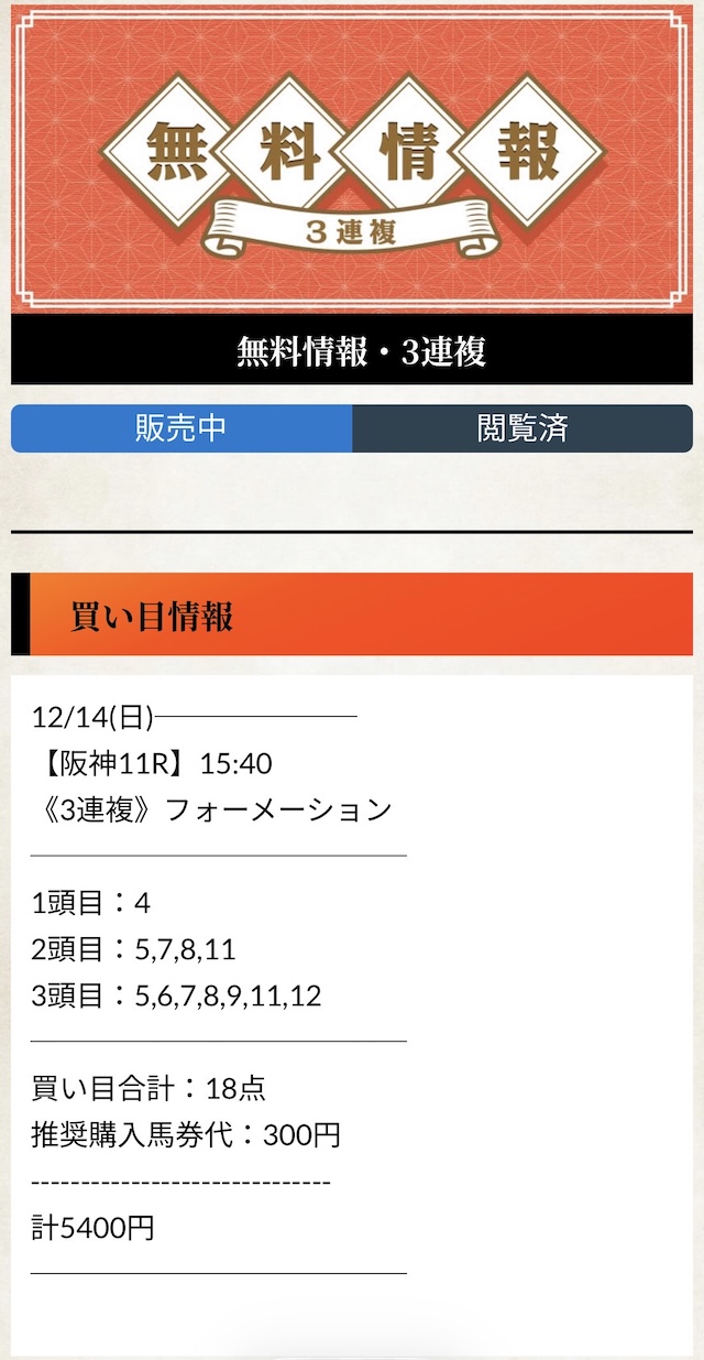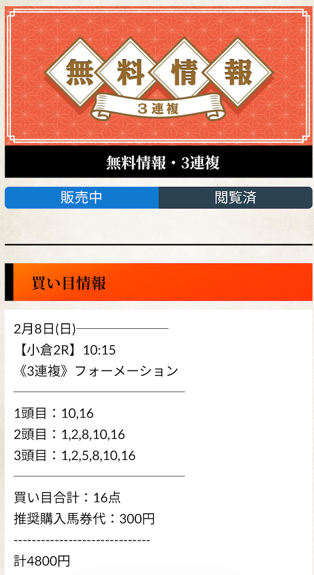 私は無料予想で獲得した利益を使って、有料予想へ勝負する事をおすすめしています。