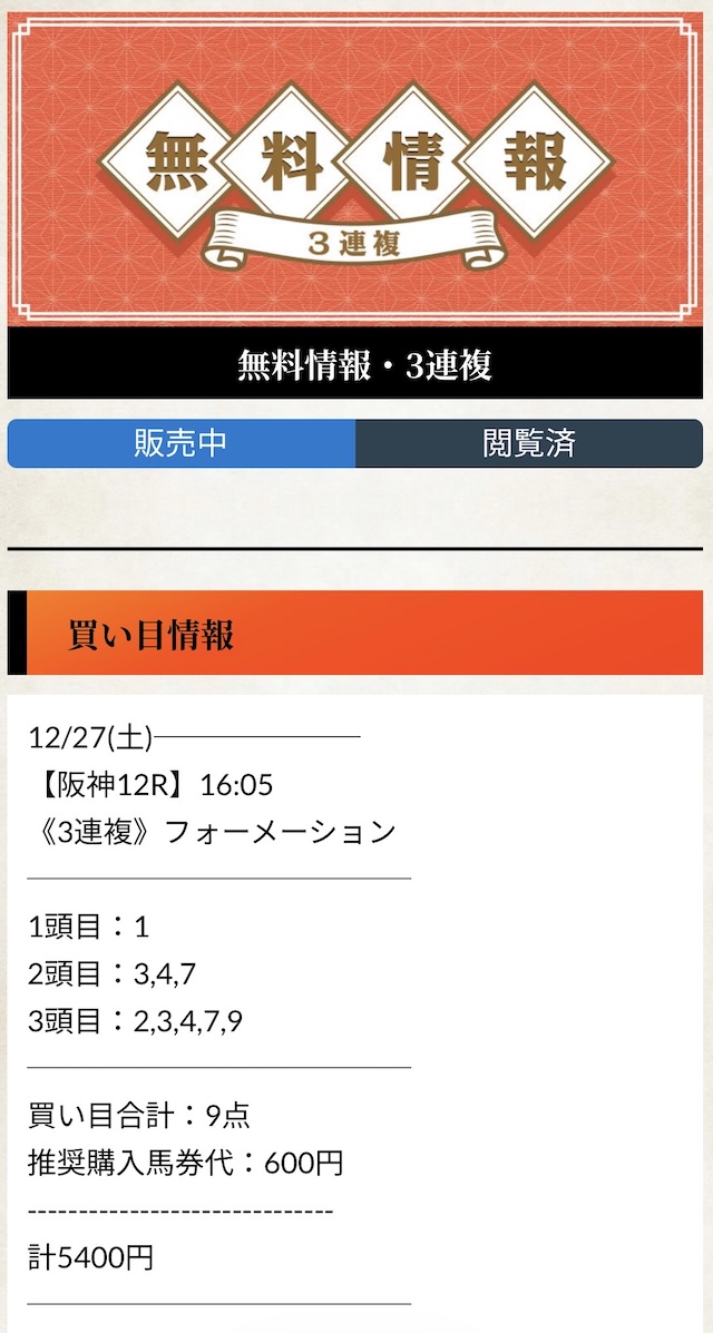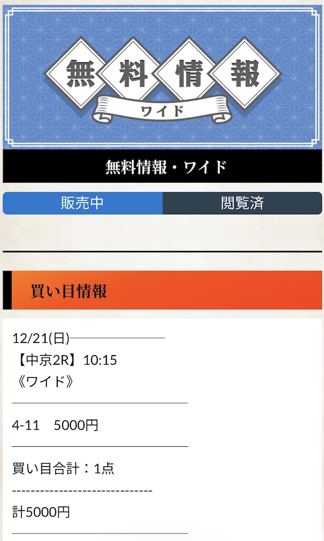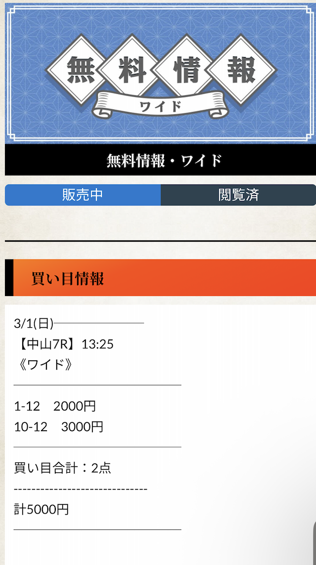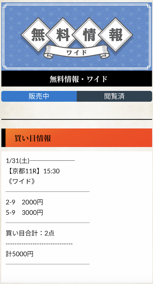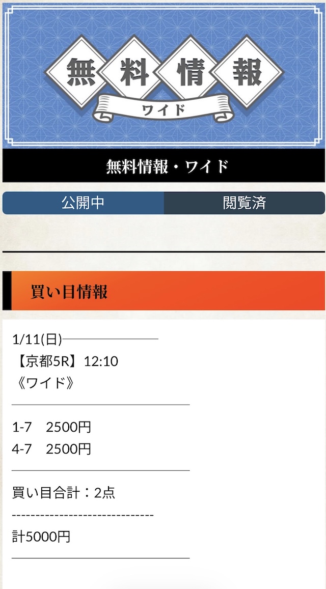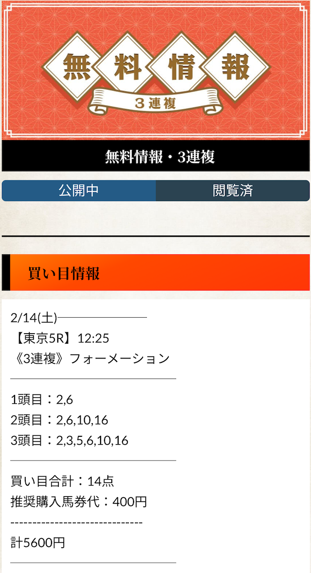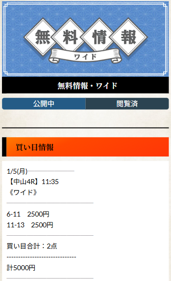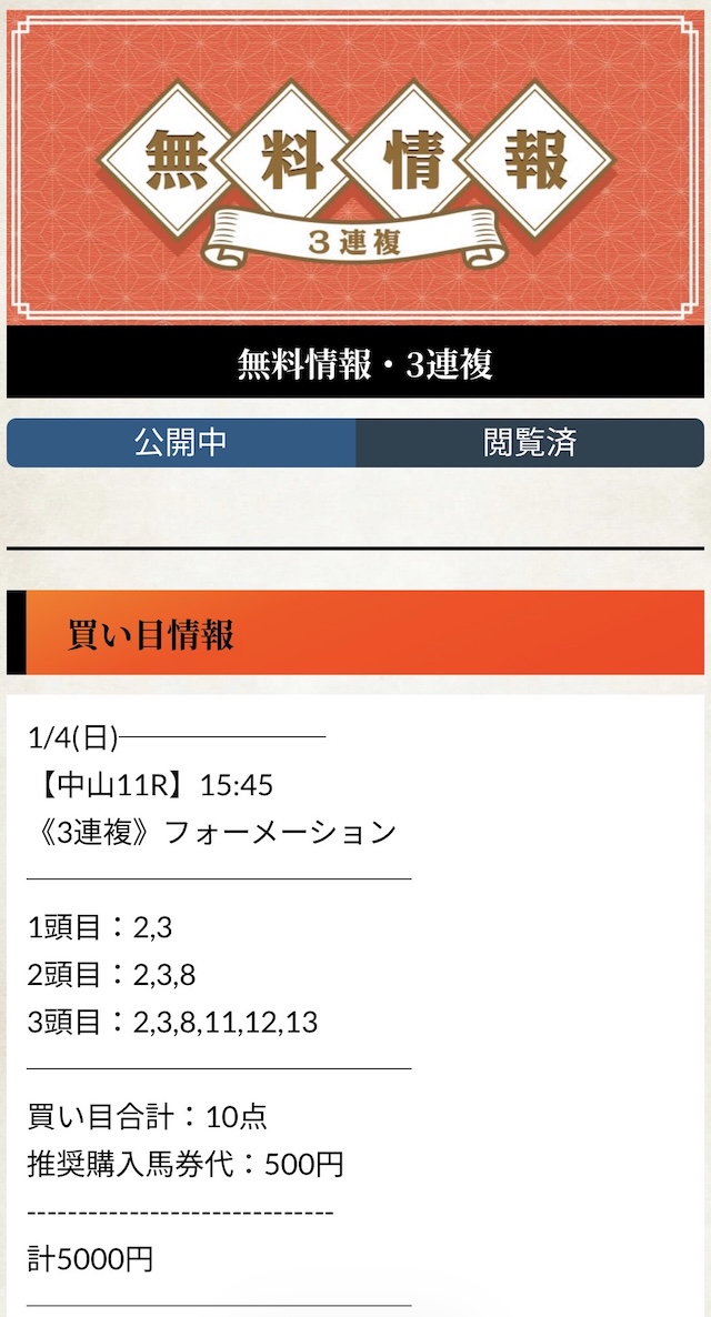 無料予想の推奨馬券代は5,000円なので、参加へのハードルは低め。